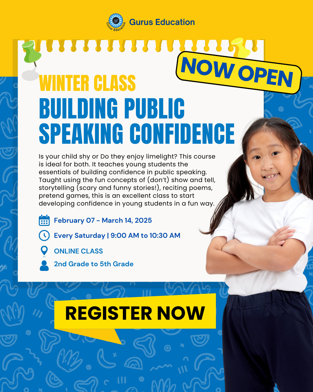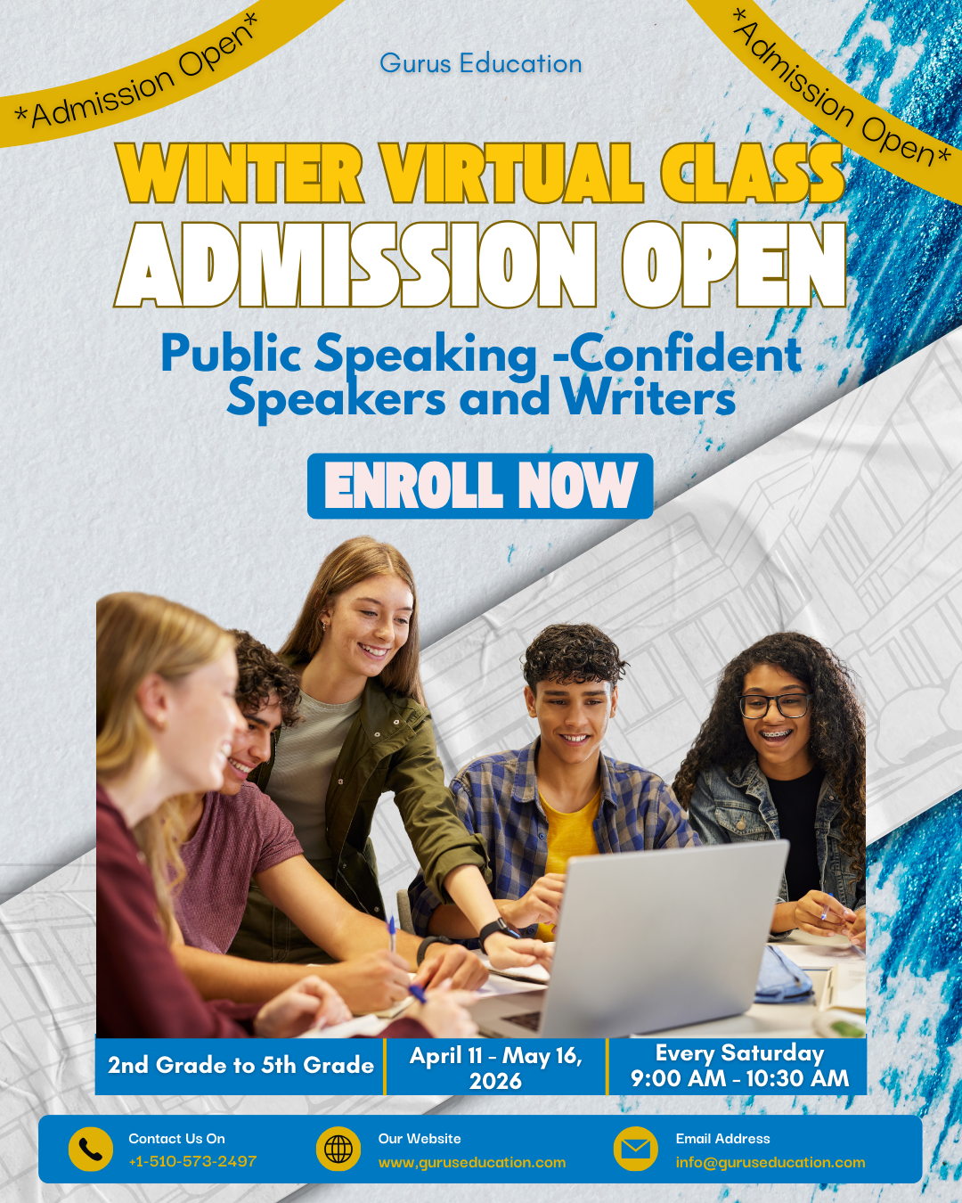 Bring out confidence in your children! This week theme is “Around the World in 5 days”. The theme-based activities, speech and debate topics make a fun learning environment for kids. Students do tongue-twister challenges, story-telling, poems, games, debates and presentations with props and dress up. Children learn to present with confidence, use emotion, and connect with the audience fluently. Shy students and talkative ones alike will benefit and learn from this class. In the second half of the day, students play fun theme-based activities, do group projects and presentations!